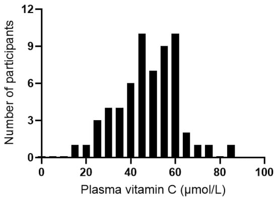 Distribution of plasma vitamin C concentrations of the study cohort at baseline (n = 60).