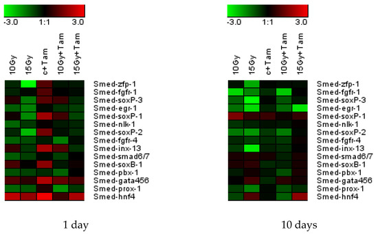 3.3. Tameron Saves the Expression of Neoblast Marker Genes after Sublethal Doses of X-ray Irradiation