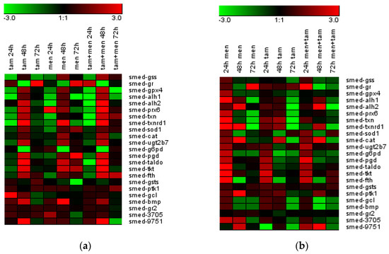 3.7. Tameron Modulates the Expression of Oxidative Stress Response Genes after Menadione-Induced Oxidative Stress in Intact and Regenerating Planarians