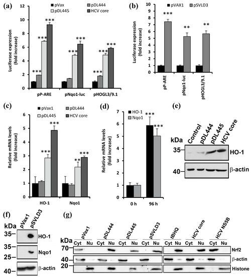 - Carvajal-Yepes, M.; Himmelsbach, K.; Schaedler, S.; Ploen, D.; Krause, J.; Ludwig, L.; Weiss, T.; Klingel, K.; Hildt, E. Hepatitis C Virus Impairs the Induction of Cytoprotective Nrf2 Target Genes by Delocalization of Small Maf Proteins. J. Biol. Chem. 2011, 286, 8941–8951. [Google Scholar] [CrossRef]
