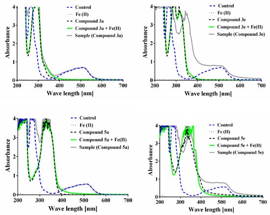 Supplementary data: 1H NMR and 13C NMR spectra of the synthesized compounds; ATR-IR spectra of the synthesized compounds; UV-vis absorbance spectra of control-standard orange–red Fe(II)-1,10 phenantroline complex; the tested hydrazone compounds; UV absorbance spectra at different pH measured from 0, 1, 2, 3, and 24 h.