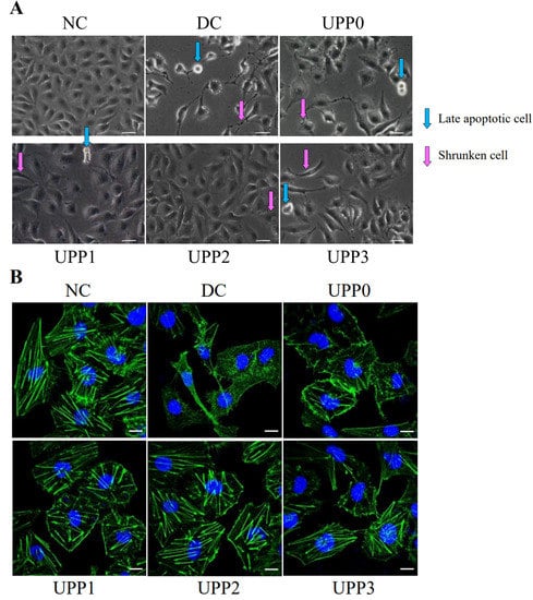 3.3. UPPs Improve Cell Morphology and Cytoskeleton