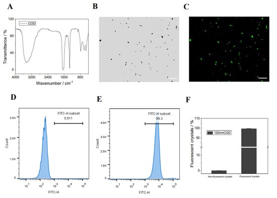 - FITC fluorescent labeling and characterization of nano−COD: Based on the experimental method of our previous study [], nano−COD was prepared using a two-step reaction.