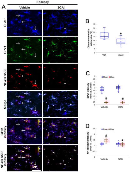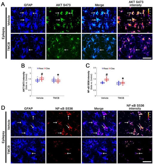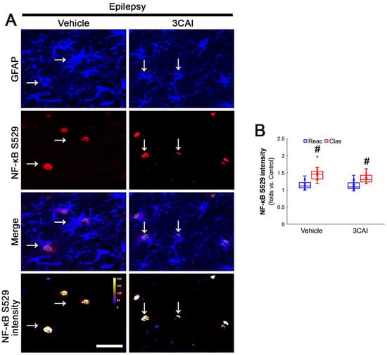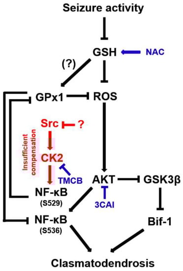 - Ryu, H.J.; Kim, J.E.; Yeo, S.I.; Kang, T.-C. p65/RelA-Ser529 NF-κB subunit phosphorylation induces autophagic astroglial death (Clasmatodendrosis) following status epilepticus. Cell. Mol. Neurobiol. 2011, 31, 1071–1078. [Google Scholar] [CrossRef]