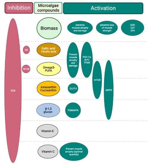 5. Preventive Effects of Microalgal Biomasses and Their Bioactive Molecules in Muscle Oxidative Stress and Mitochondrial Functions