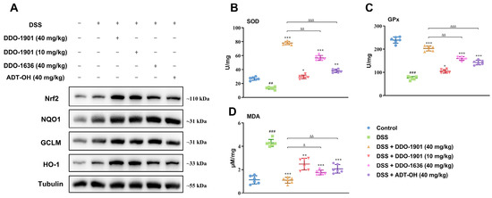 3.7. DDO-1901 Enhances the Antioxidant Defenses via Activation of Nrf2 against DSS-Induced Colitis in Mice