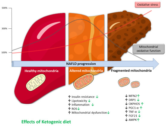 Considering that ketosis decreases the overall OxS and may slow or reduce mitochondrial dysfunctions, the aim of the present review is to focus on the close link between mitochondria, OxS and liver at the light of the physiology of KD and its potential therapeutic role in NAFLD.