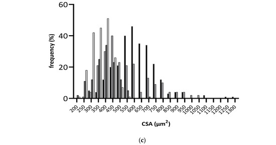 | Gastrocnemius (g) | 4.60 ± 0.26 ab | 4.58 ± 0.14 cd | 2.77 ± 0.91 ac | 3.22 ± 1.16 bd |