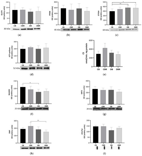 - Padrão, A.I.; Carvalho, T.; Vitorino, R.; Alves, R.M.P.; Caseiro, A.; Duarte, J.A.; Ferreira, R.; Amado, F. Impaired Protein Quality Control System Underlies Mitochondrial Dysfunction in Skeletal Muscle of Streptozotocin-Induced Diabetic Rats. Biochim. Biophys. Acta-Mol. Basis Dis. 2012, 1822, 1189–1197. [Google Scholar] [CrossRef]