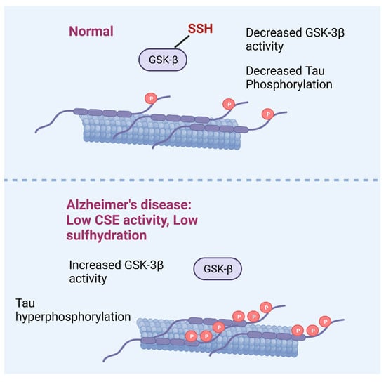 | Na-GYY4137 | 3xTg-AD mouse model of AD | Improved motor and cognitive function in 3xTg-AD mice. Increased overall sulfhydration. Inhibited Tau phosphorylation by sulfhydrating glycogen synthase kinase (GSK3β) and inhibiting its activity. | [72] |
