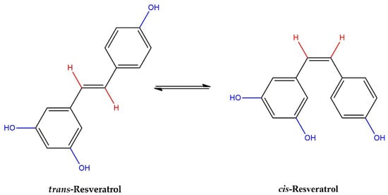 The molecular structure of RSV includes hydroxyl groups, benzene rings and C–C double bonds. Thus, RSV exists as two geometric isomers, trans-RSV and cis-RSV, which are both present in red wine (Figure 1).