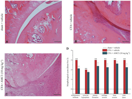 3.4. Pain-Relieving Effect of AMC3 on CFA-Induced Rheumatoid Arthritis