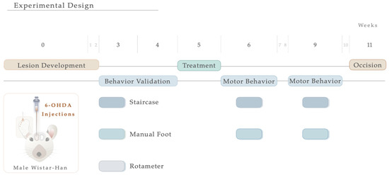 - Boix, J.; Padel, T.; Paul, G. A partial lesion model of Parkinson’s disease in mice—Characterization of a 6-OHDA-induced medial forebrain bundle lesion. Behav. Brain Res. 2015, 284, 196–206. [Google Scholar] [CrossRef]