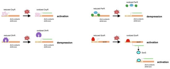 OxyR, PerR, OhrR, and SoxRS are not present in all bacteria but several of them can co-exist within the same bacterial species and their respective regulon may overlap to some extent.