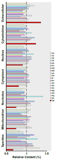 3.1. Different Cellular Compartments Have Distinct Protein Cys Content