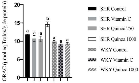 3.5. Effect of Red Quinoa Hydrolysate Administration on Oxidative Stress