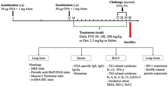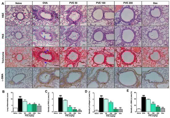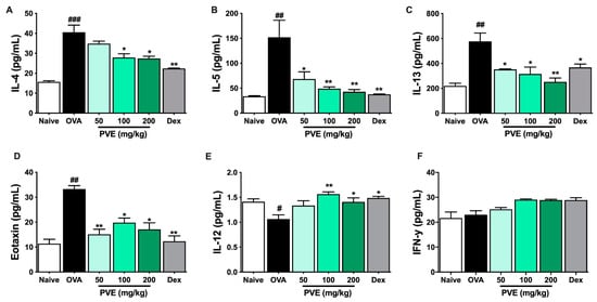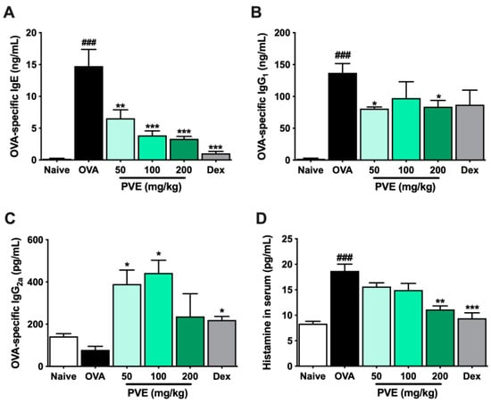 3.6. PVE Reduced The Levels of OVA-Specific Antibodies and Histamine in the Serum of the OVA-Induced Asthmatic Mouse Model