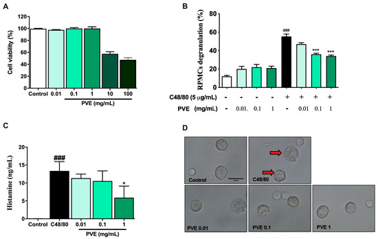 3.3. PVE Prevented Degranulation of RPMCs by Compound 48/80