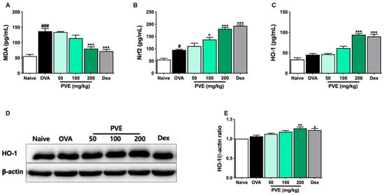 3.8. Effect of PVE on Oxidative Stress in the OVA-Induced Asthmatic Mouse Model
