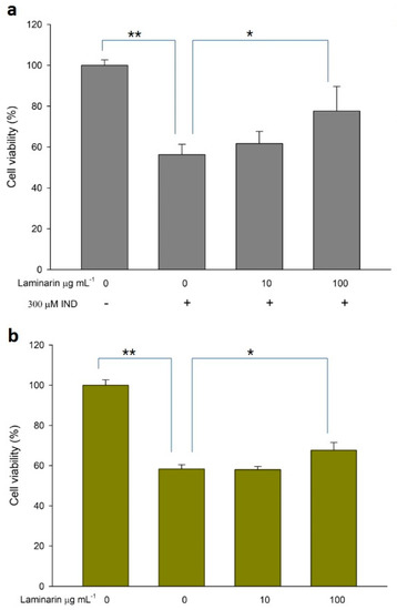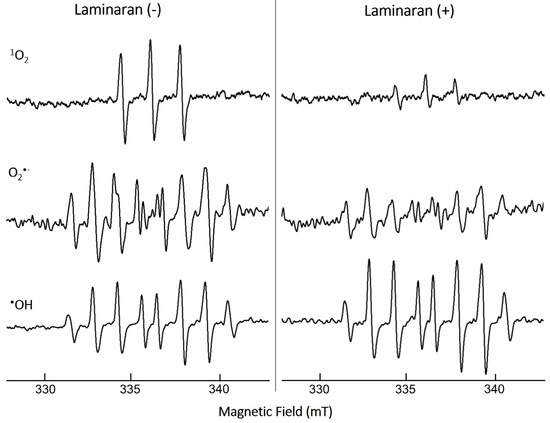 3.1. ROS-Scavenging Effect of Laminaran Extract