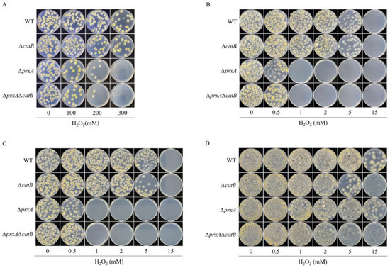 3.3. Expression Profiles of PrxA and CatB Were Correlated with Their H2O2 Resistance