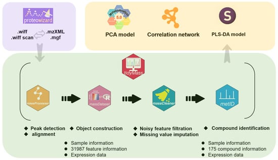 - Shen, X.; Yan, H.; Wang, C.; Gao, P.; Johnson, C.H.; Snyder, M.P. TidyMass an object-oriented reproducible analysis framework for LC-MS data. Nat. Commun. 2022, 13, 4365. [Google Scholar] [CrossRef] [PubMed]