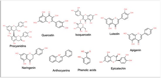 PCs are considered essential in our diet. They are classified into various groups according to their chemical structure, with phenolic acids and flavonoids being the most abundant phenolic compounds in diet. Numerous studies have evaluated their effects on human health, attributing to them an important role in protecting the organism against external stimuli and in the elimination of reactive oxygen species [5]. PCs are synthetised by plants under normal and stress conditions and have various functions such as attracting insects for pollination and protecting against pathogens and ultraviolet radiation [6]. Thus, these compounds are present in foods such as tea, cocoa, fruits, vegetables, and honey, and their content varies widely depending on the variety, plant origin, agronomic and storage conditions, harvesting time, and climate, among other factors [7]. Improvements in lipid profiles, blood pressure, insulin resistance and systemic inflammation have been observed following consumption of PCs-rich foods, and these improvements are associated with improved cardiovascular health. In the central nervous system, these compounds counteract chronic and acute inflammatory processes, possess neuroprotective activity, and effectively reduce some signs and symptoms of neurodegenerative conditions, thus contributing to maintaining good brain health and overall quality of life [5].