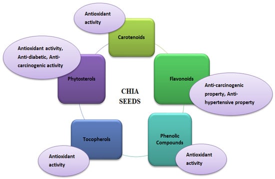 - Motyka, S.; Skala, E.; Ekiert, H.; Szopa, A. Health-promoting approaches of the use of chia seeds. J. Funct. Foods 2023, 103, 105480. [Google Scholar] [CrossRef]