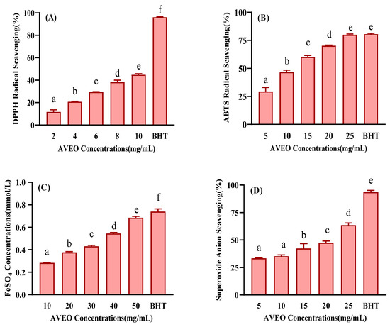3.2. Antioxidant Activity In Vitro of AVEO