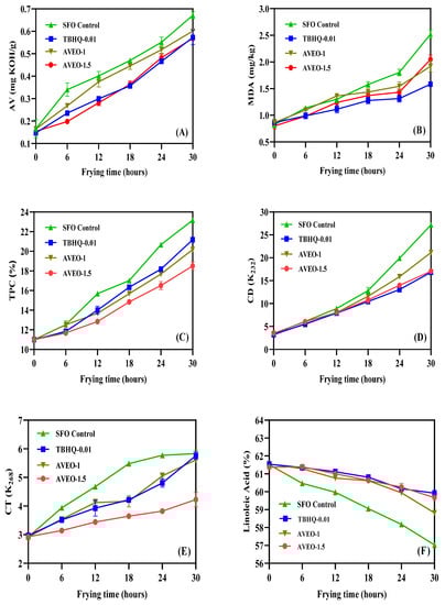 | Items | Frying Time (h) | SFO Control | TBHQ-0.01 | AVEO-1.5 |
