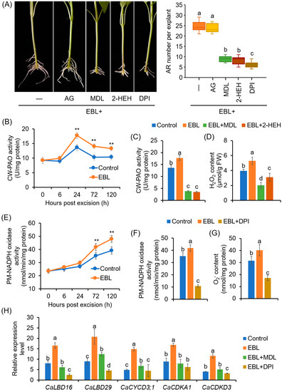 3.3. CW-PAO and PM-NADPH Oxidase Were Involved in EBL-Induced ROS Generation during AR Formation