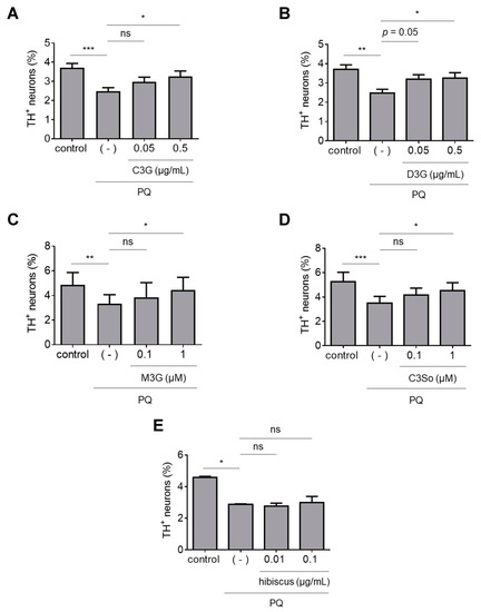 4.1. ANC- and PAC-Rich Extracts Protect Dopaminergic Neurons against PQ Neurotoxicity