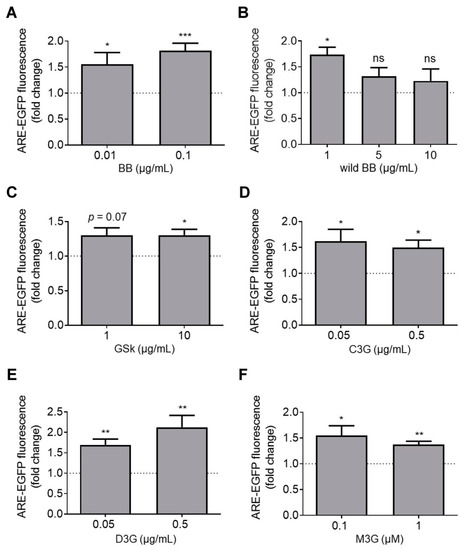 3.6. Effects of Botanical Extracts on Nrf2 Transcriptional Activity