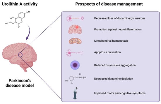 Taking into consideration the issues mentioned above, this review aims to organize the existing knowledge and explore the future directions of the role of UA in PD management. The review emphasizes the analysis of the studies focused on the potential neuroprotective effect of this bacteria-derived natural compound, especially in the context of PD. As the data are limited, we also presented possible mechanisms of the action and related other health benefits of UA to support its potential of neuroprotective activity, and to give a broader perspective of potential applications of this compound in PD. Moreover, we discussed a few studies on the antiparkinsonian effects of pomegranate juice treatment which was associated with the presence of UA.