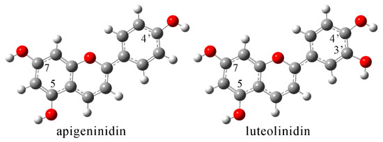 Optimized structures (at B3LYP/6-311++G(d,p) level of theory) of apigeninidin and luteolinidin.