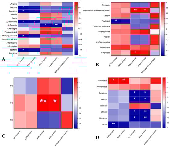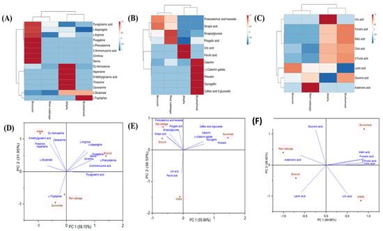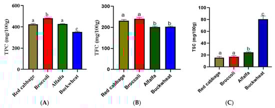 3.5. Exploring the Contribution of Amino Acids, Polyphenols, and Organic Acids to the Functional Properties of Red Cabbage, Broccoli, Alfalfa and Buckwheat