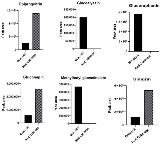 - Tabart, J.; Pincemail, J.; Kevers, C.; Defraigne, J.-O.; Dommes, J. Processing effects on antioxidant, glucosinolate, and sulforaphane contents in broccoli and red cabbage. Eur. Food Res. Technol. 2018, 244, 2085–2094. [Google Scholar] [CrossRef]