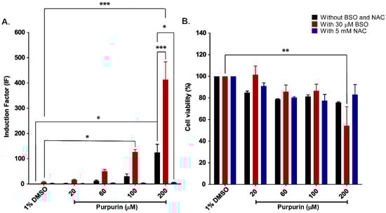 3.2. Nrf2 Activation and Cytotoxicity of Purpurin in Nrf2 CALUX Cells with and without Modulated Intracellular GSH Levels