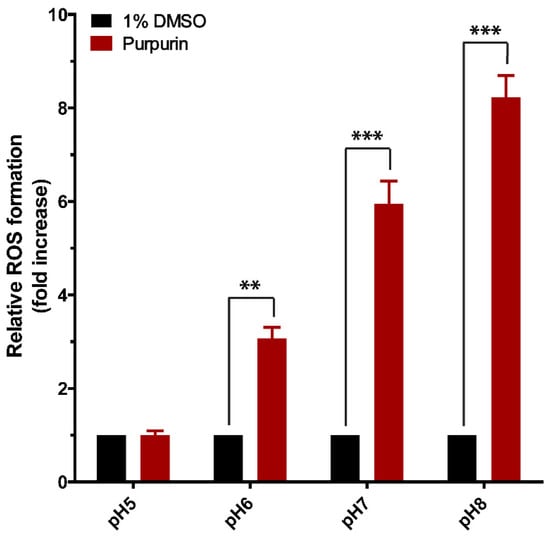 3.5. pH Dependent Cell-Free ROS Formation Induced by Purpurin