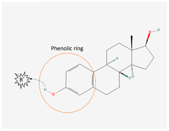 Oestrogen antioxidant structure. Oestrogen chemical structure [52] contains a phenolic ring capable of scavenging free radicals (R˙) by transferring a hydrogen atom to the free radical.