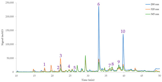 - Dugo, P.; Lo Presti, M.; Öhman, M.; Fazio, A.; Dugo, G.; Mondello, L. Determination of flavonoids in citrus juices by micro-HPLC-ESI/MS. J. Sep. Sci. 2005, 28, 1149–1156. [Google Scholar] [CrossRef] [PubMed]