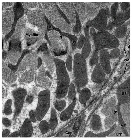 - Picard, M.; White, K.; Turnbull, D.M. Mitochondrial morphology, topology, and membrane interactions in skeletal muscle: A quantitative three-dimensional electron microscopy study. J. Appl. Physiol. 2013, 114, 161–171. [Google Scholar] [CrossRef]