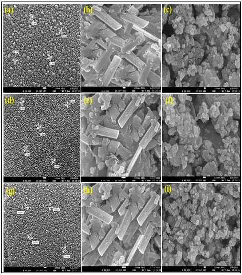 SEM is one of the most commonly used techniques for evaluating NPs. Electron-sample interactions provide signals that reveal information about the sample, such as its surface shape and chemical makeup []. The morphology of the synthesized ZnO-NPs of selected plants (UD, MC, and MK) was studied using a JEOL JSM-7610F Plus with an Au sputter coater. The samples were coated with a thin coating of gold or gold–palladium alloy to improve secondary electron emission and avoid surface charge so that the specimen conducted uniformly and provided a homogenous surface for study and imaging.