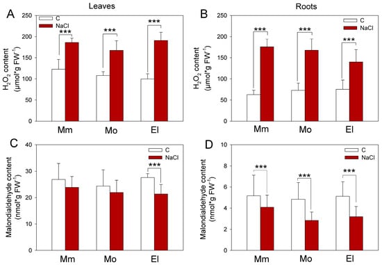 2.2. H2O2 and Malondialdehyde Content Measurements