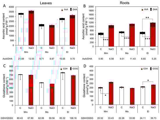 3.2. The High and/or Stress-Inducible, Non-Enzymatic Antioxidant Levels Promote an Effective Salt-Stress Response