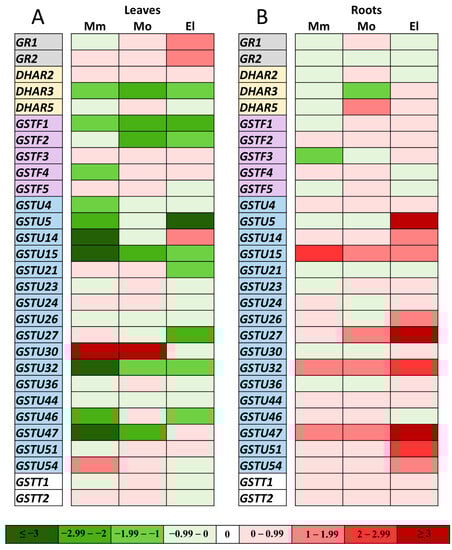 - Sappl, P.G.; Oñate-Sánchez, L.; Singh, K.B.; Millar, A.H. Proteomic analysis of glutathione S-transferases of Arabidopsis thaliana reveals differential salicylic acid-induced expression of the plant-specific phi and tau classes. Plant Mol. Biol. 2004, 54, 205–219. [Google Scholar]
