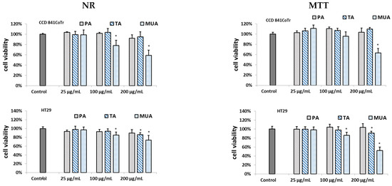 The results from the MTT and NR assays are shown in Figure 2.