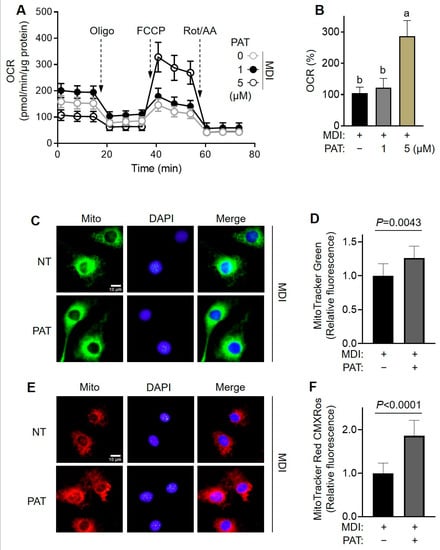 3.5. PAT Enhances Mitochondrial Function in Adipocytes