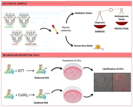 - Sastre-Oliva, T.; Corbacho-Alonso, N.; Albo-Escalona, D.; Lopez, J.A.; Lopez-Almodovar, L.F.; Vázquez, J.; Padial, L.R.; Mourino-Alvarez, L.; Barderas, M.G. The influence of coronary artery disease in the development of aortic stenosis and the importance of the albumin redox state. Antioxidants 2022, 11, 317. [Google Scholar] [CrossRef] [PubMed]