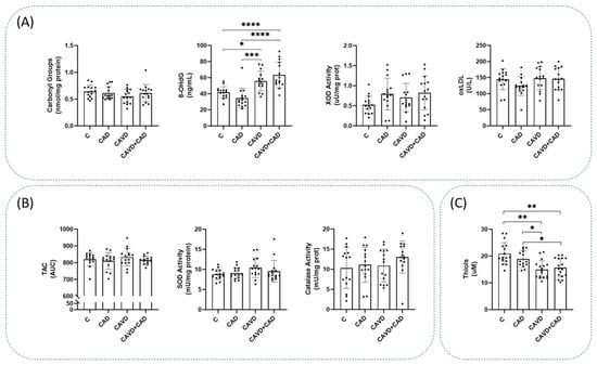 3.2. Markers of Oxidative Damage and of Antioxidant Defenses